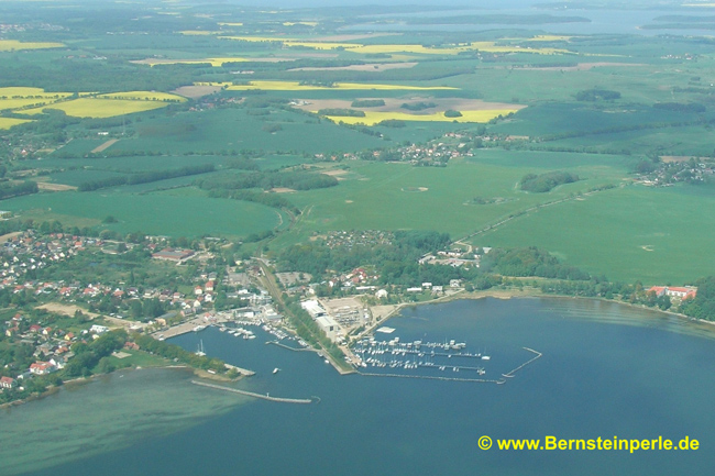 Die Marina von Lauterbach, rechts das neue Badehaus Goor.