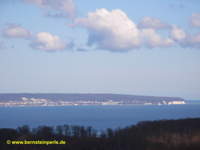 Blick vom Jagdschloss Granitz auf Sassnitz und Kreideküste